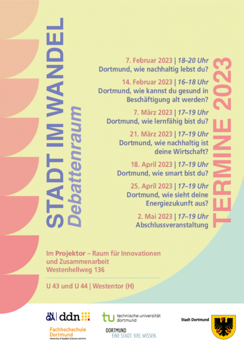 Das Format des Masterplans Wissenschaft findet immer von 17 – 19 Uhr im „Projektor – Raum für Innovationen und Zusammenarbeit“, am Westenhellweg 136, statt. Die Teilnahme an den Debattenräumen ist kostenlos.